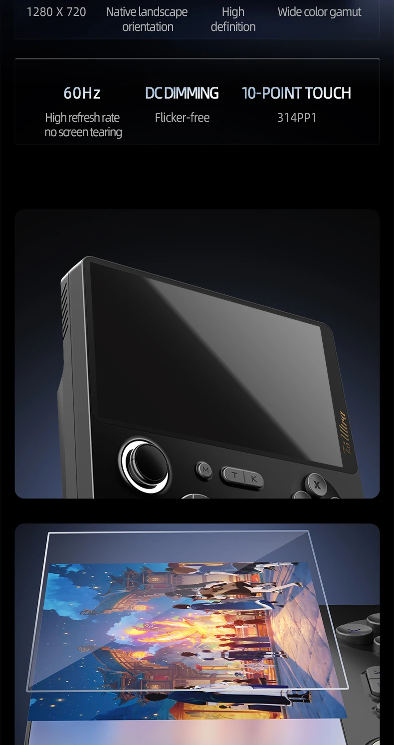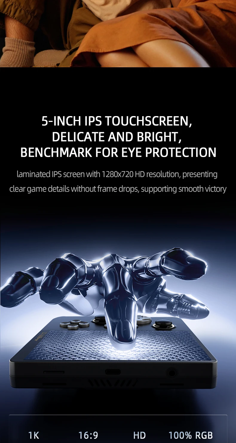 Scherp & kleurrijk scherm: Het 5″ IPS‑scherm met 720p‑resolutie levert heldere beelden en levendige kleuren — genoeg om je games tot leven te laten komen.Â