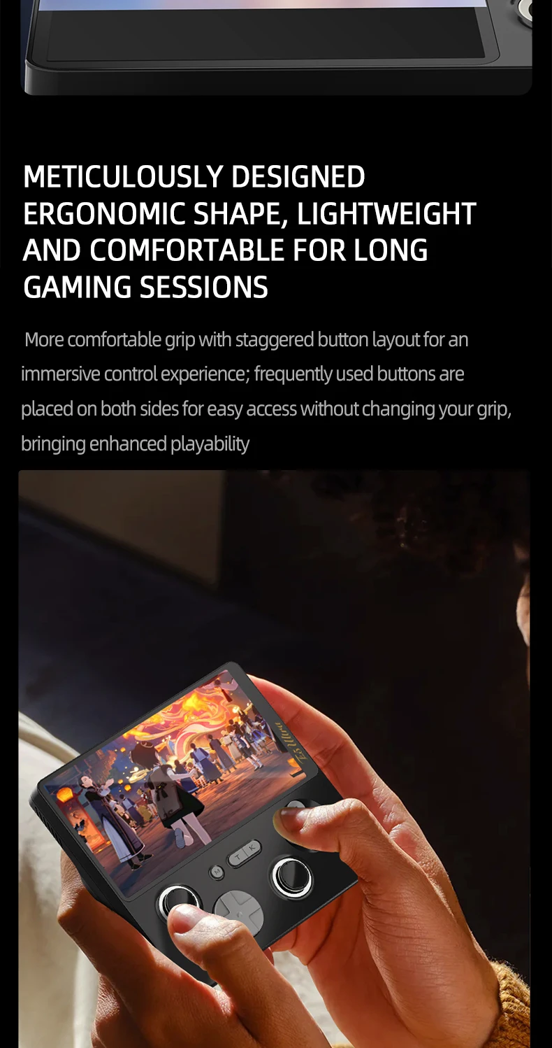 Compact, verticaal & extreem draagbaar: Met z’n 5‑inch scherm, lichte gewicht (~290 g) en verticale vorm ligt hij lekker in je hand — ideaal voor onderweg, op de bank, of tijdens een lange treinrit.